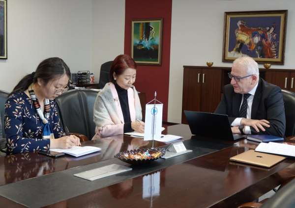 The Rector of South East European University, Prof. Dr. Sadudin Ibraimi, held a working meeting with the Ambassador of the Netherlands to North Macedonia, Her Excellency Özlem Canel. The Advisor for Community and International Relations, Prof. Dr. Besa Arifi, was also present at the meeting.
