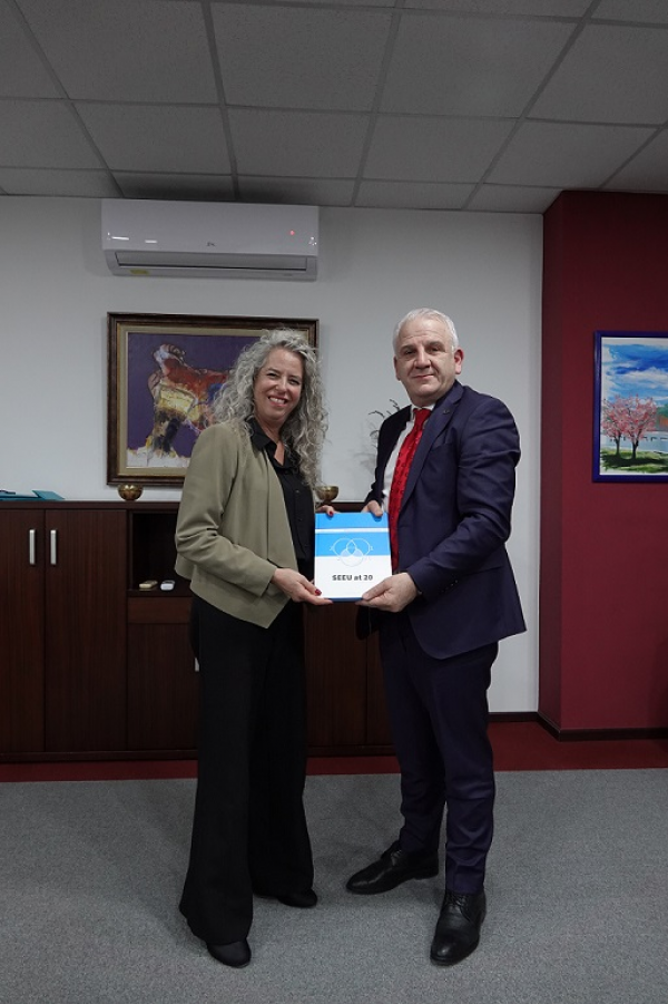 12 December 2025Today, in Elbasan, the Rector of the South East European University (SEEU), Prof. Dr. Sadudin Ibraimi, and the Rector of the University of Elbasan “Aleksandër Xhuvani”, Prof. Dr. Elvira Fetahu, signed a collaboration agreement, emphasizing the advancement of education and scientific research through joint projects and academic exchange. The agreement aims to create new opportunities for the professional and academic development of staff and students, as well as to strengthen inter-institutional relations.