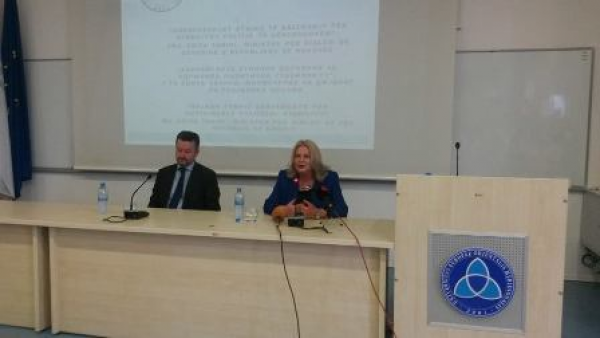8 May 2015On May 5th 2015 the Minister for Dialogue in the Government of the Republic of Kosovo, Edita Tahiri, gave a lecture for the students and staff of South East European University (SEEU), in Tetovo. Her topic was ‘Balkan ethnic agreements for sustainable political stability’.