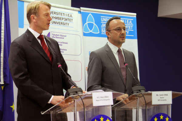 27 January 2014On Tuesday (21 January 2014), at EU headquarters in Skopje, the Ambassador of the European Union (EU), in Macedonia, Aivo Orav, met with the Rector of the South East European University, Prof. Dr. Zamir Dika.