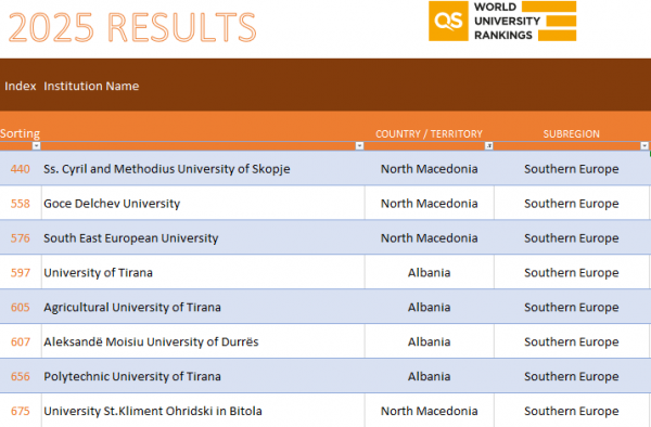 10 December 2024The South East European University (SEEU) has been ranked third in North Macedonia in the latest global university ranking for 2025, published by the "Quacquarelli Symonds" (QS) Institute, which also includes three other universities from North Macedonia.