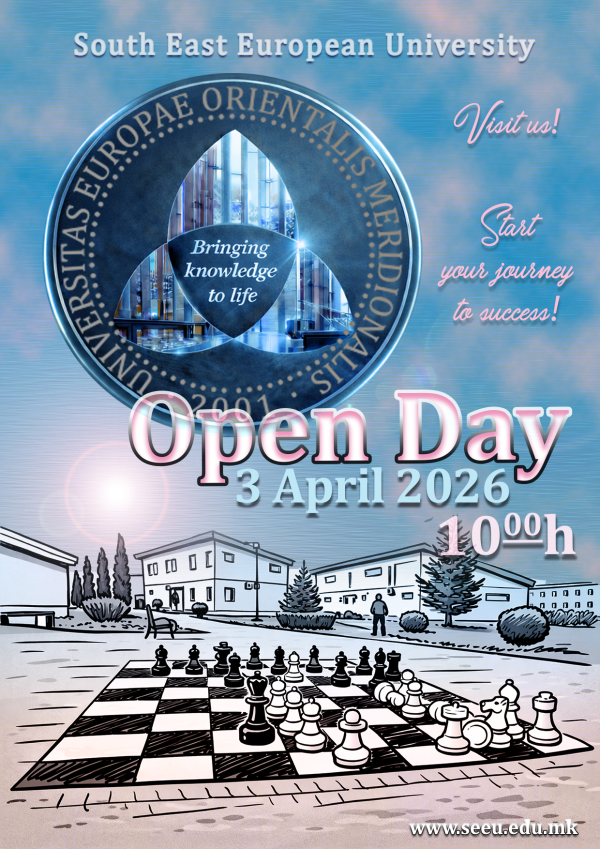 Open Day 3 April 2026 Open Day Date: 03.04.2026 Time: 10.00 Venue: Tetovo Campus, SEEU More news Competition for the best Business Plan PANEL DISCUSSION Exhibition of student projects - ESA 11 Ligjëratë tematike – Sh.T. Denion Mejdani ECONLIT FORUM 3.0 Promovimi i librit "Postieri dashnisë", me autor Elhaid Cufi Education and Professional Development
