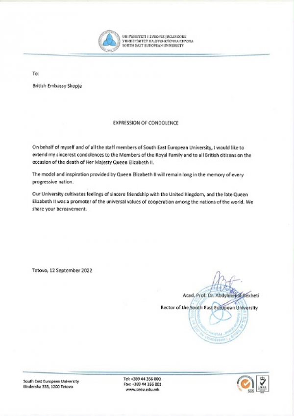 13 September 2022On Monday (12th September 2022), South East European University and the Global Council for Tolerance and Peace (GCTP), signed a Memorandum of Cooperation in areas of mutual interest.