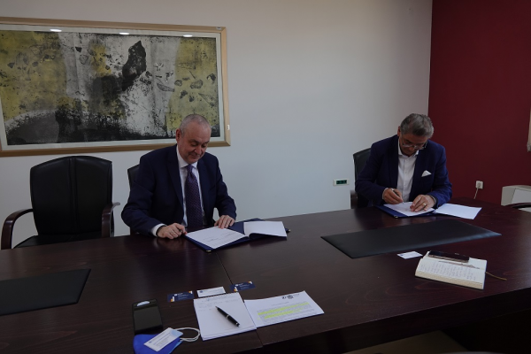 6 April 2022The creation of new quality staff in the field of macroeconomics and finance and the advancement of research activity was the main goal of the signing of the Memorandum of Cooperation between the South East European University (SEEU) and the National Bank of North Macedonia, which took place today (6th April 2022), on the University Campus in Tetovo.