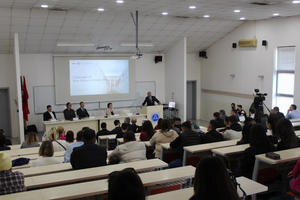 24 March 2022"Challenges of new states in foreign policy", was the topic of the Round Table, which was held today (24.03.2022), at the South East Europe University, organized by the Faculty of Contemporary Social Sciences, where the Deputy Prime-Minister and Minister of Foreign Affairs of Kosovo, Mrs. Donika Gërvalla was invited.