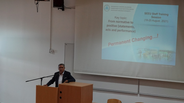 20 August 2021South East European University, on 18th and 19th August, within the framework of the annual activity for Professional Development, conducted the training of academic and administrative staff, where this year the key theme was-From normative to positive (statements, acts and performance).