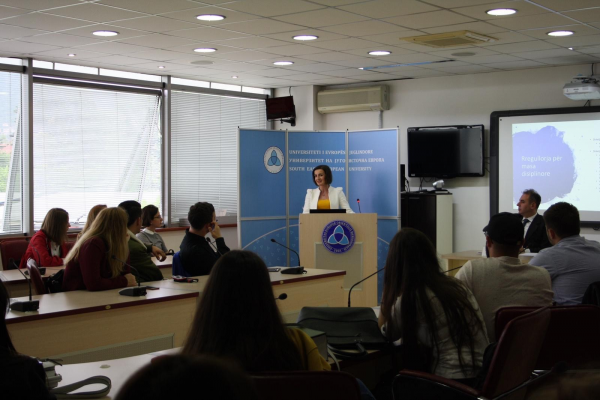 16 May 2019"You, as a European university, are the main pillar of expertise in the process of North Macedonia's integration into the EU," said Deputy Prime Minister of RNM committed to European Affairs, Bujar Osmani. Minister Osmani spoke on Thursday (16 May 2019) in a lecture for students of South East European University in Tetovo, on the topic of "Integration into the EU". He said that he had previously met with Rector Acad. Prof. Dr. Abdylmenaf Bexheti, with whom he discussed engaging experts as key resources in professional teams, as an expression of his high appreciation for the expertise of the staff of South East European University.