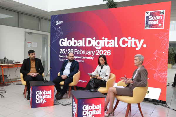 Настанот продолжува утре со други тематски сесии и деловни состаноци и активно учество на академскиот кадар и студентите, потврдувајќи го Универзитетот на Југоисточна Европа како важен центар за дијалог помеѓу креирањето политики, индустријата и иновациите во регионов.