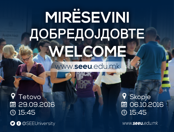 29 shtator 2016Me datë 29 shtator (e enjte) dhe 06 tetor (e enjte) Universiteti i Evropës Juglindore do të organizojë program orientimi për studentët e ri të studimeve master në Tetovë dhe në Shkup.