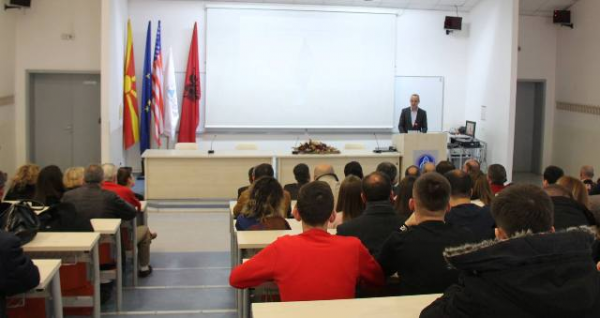 11 dhjetor 2017„Terrorizmi dhe krimet e urrejtjes: mbrojtja e të drejtave të njeriut të amerikanëve myslimanë pas përhapjes së incidenteve terroriste“, ishte tema e ligjëratës së ndihmës-prokurorit shtetëror të SHBA-ve, z. Scott L. Garland dhe këshilltarit rezident juridik në Ambasadën e SHBA-ve në Shkup, John T. McNeil që u mbajt të hënën (11.12.2017), në UEJL, në organizim të Fakultetit Juridik dhe Ambasadës së SHBA-ve në Shkup.