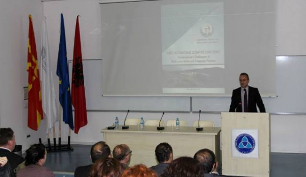 20 maj 2014“Sfidat bashkëkohore të multikulturalizmit dhe politikat gjuhësore”, ishte tema e konferencës shkencore ndërkombëtare, që u mbajt në Universitetin e Evropës Juglindore në Tetovë, të premten dhe të shtunën (16-17 maj), ku me punimet e tyre u prezantuan një numër i konsiderueshëm i studiuesve dhe hulumtuesve nga Maqedonia dhe vendet e rajonit. Konferenca u organizua nga Instituti Shkencor "Max van der Shtul".