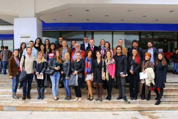 28 mars 2014“Në Bankën Popullore të Maqedonisë ka disa të diplomuar nga universiteti juaj dhe ata janë ambasadorët tuaj më të mirë. Nëpërmjet pyetjeve vërejta se studentët aktualë po ashtu janë shumë të përgatitur dhe kjo është si rezultat i mësimeve cilësore që marrin në këtë universitet”, tha guvernatori i Bankës Kombëtare të Maqedonisë, Dimitar Bogov, gjatë ligjëratës, që mbajti të mërkurën (26.03.2014), para studentëve të Universitetit të Evropës Juglindore.