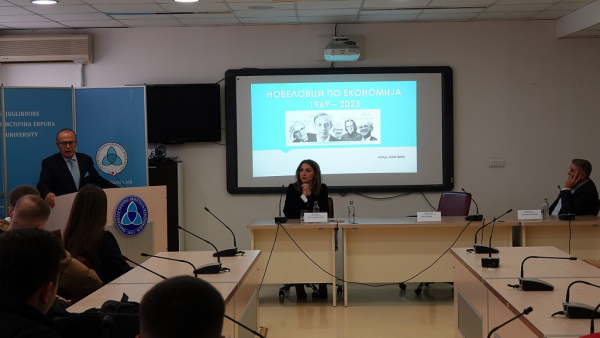 6 dhjetor 2023Në organizim të Fakultetit të Biznesit dhe Ekonomisë, sot (6 dhjetor 2023), ligjëratë për studentët mbajti akademiku i mirënjohur në sferën e ekonomisë, Taki Fiti, me temë: “Nobelistët e ekonomisë 1969-2023, me theks nobelistja e fundit Klaudija Goldin”.